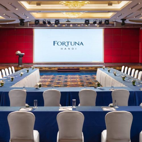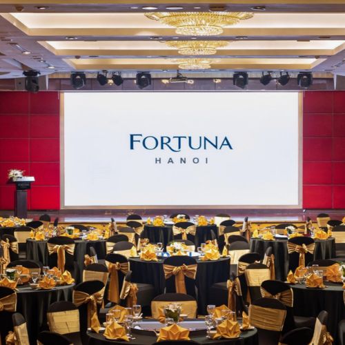 Fortuna Hanoi là khách sạn 4 sao có vị trí thuận tiện ngay trung tâm, nổi bật với hệ thống phòng hội nghị và sảnh tiệc được thiết kế hiện đại. Không gian nơi đây mang phong cách trang nhã, phù hợp cho hội thảo, hội nghị khách hàng, tiệc tri ân hoặc sự kiện nội bộ. Khách sạn được trang bị đầy đủ hệ thống âm thanh, ánh sáng, màn hình LED và dịch vụ hậu cần chuyên nghiệp. Đội ngũ nhân viên tận tâm đảm bảo mỗi sự kiện diễn ra trơn tru, đúng tiến độ. Fortuna cũng cung cấp dịch vụ ẩm thực đa dạng, giúp nâng tầm trải nghiệm cho khách tham dự.
