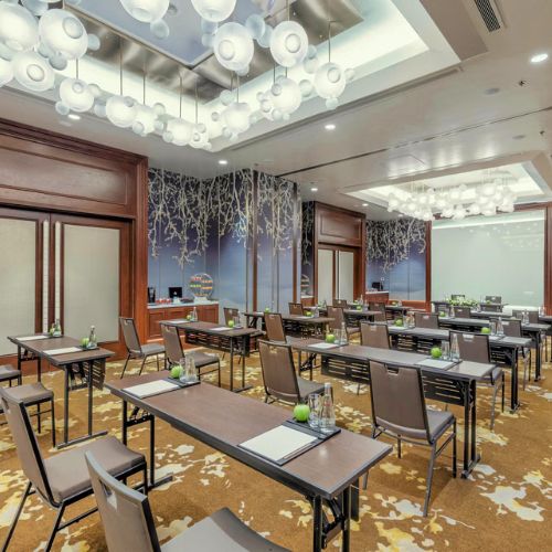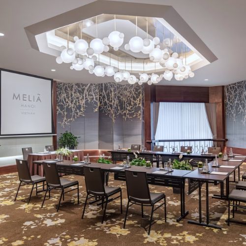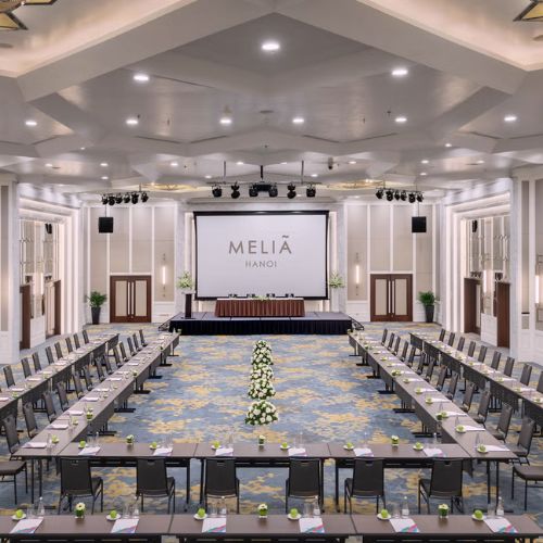 Melia Hà Nội là địa điểm tổ chức hội nghị, hội thảo và sự kiện tầm cỡ quốc tế, được đánh giá cao nhờ vị trí trung tâm và dịch vụ đẳng cấp. Khách sạn sở hữu nhiều phòng hội nghị, sảnh tiệc lớn được trang bị âm thanh – ánh sáng hiện đại, phù hợp cho các sự kiện từ vài chục đến hàng trăm khách. Không gian sang trọng, dịch vụ ẩm thực đa dạng cùng đội ngũ nhân sự chuyên nghiệp mang đến trải nghiệm trọn vẹn cho khách hàng. Melia Hà Nội là biểu tượng của sự tinh tế và chuyên nghiệp trong lĩnh vực tổ chức sự kiện tại thủ đô. Với mức giá thuê trung bình từ 50 triệu cho các sự kiện nhỏ từ 200 khách.