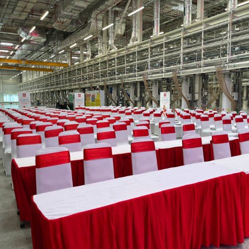 Đặc biệt, cấu trúc lưng ghế bo tròn của ghế banquet tạo điều kiện tối ưu cho việc sử dụng áo phủ và nơ, giúp không gian sự kiện trở nên đồng bộ và thẩm mỹ hơn.